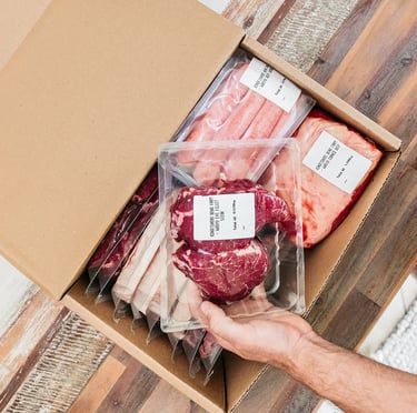 A generous mix of premium cuts, mince, bones, fat & gluten-free sausages—ethically raised and packed with care. Sustainable, delicious, and incredible value.